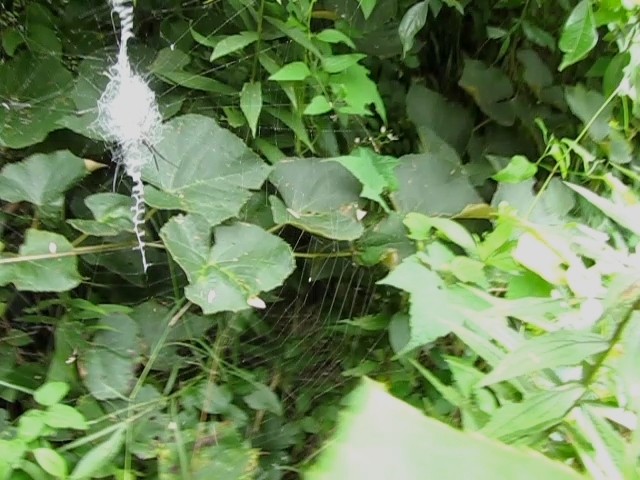Comments on Argiope. Later in the day the disc is finished and, true to form, she's hiding behind the disc showing only her legs.
