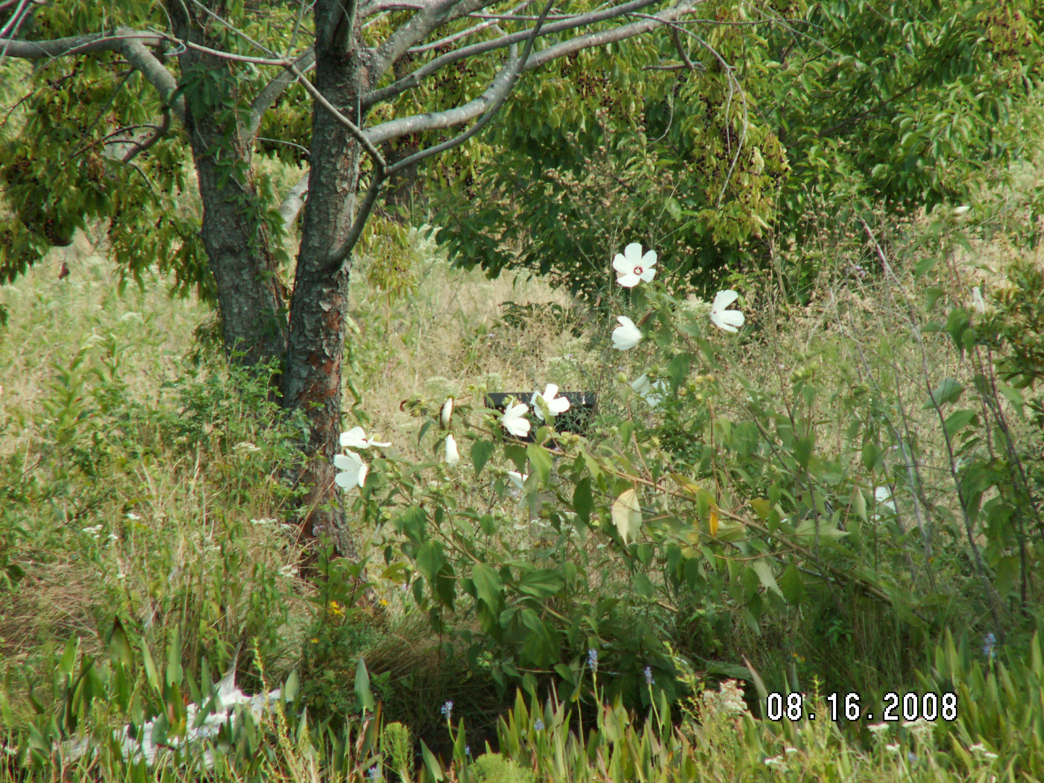 Swamp Rose-mallow with Pickerel Weed in foregrounc
