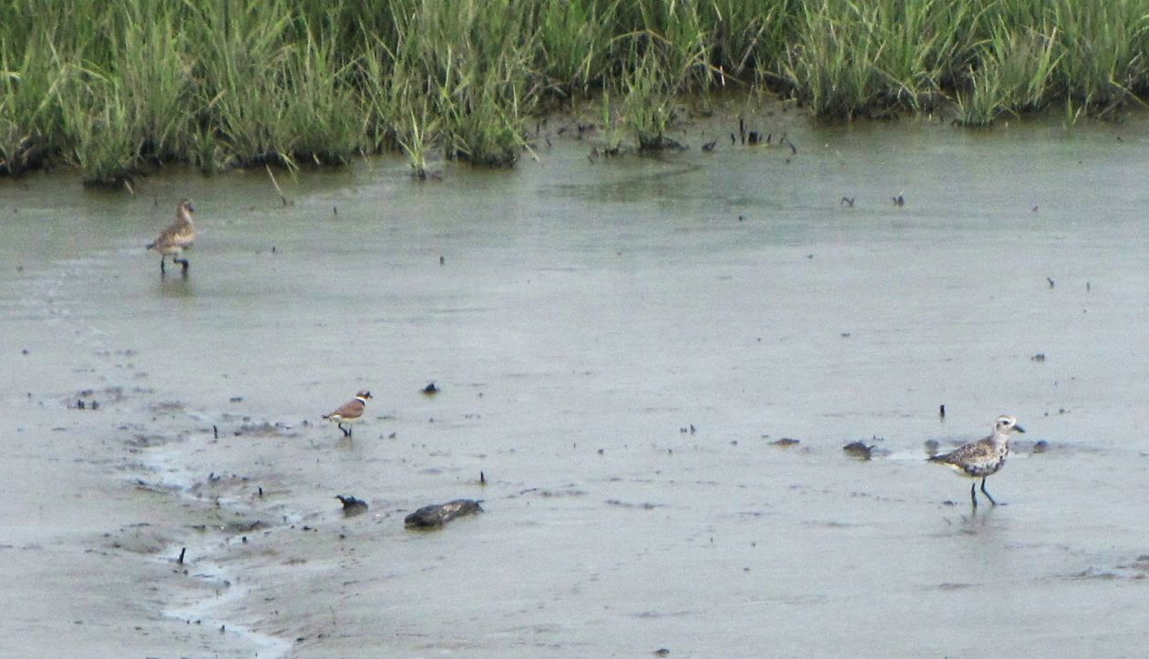 Black-bellied or American Golden Plover? with Semi-Palmated Plover in between.