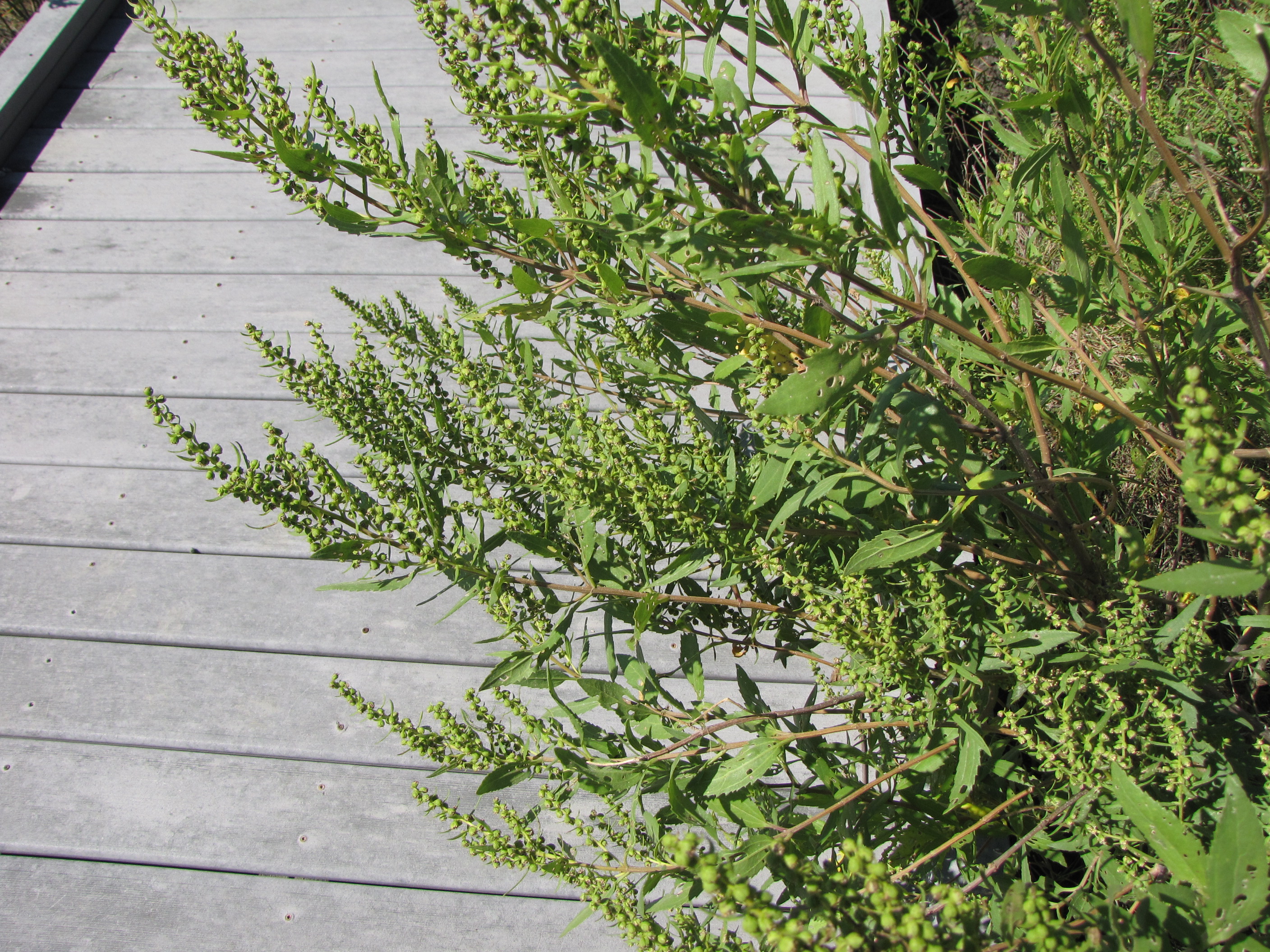 Comments on Marsh Elder - It's flowering stems are covered with what look like little round seed pods.