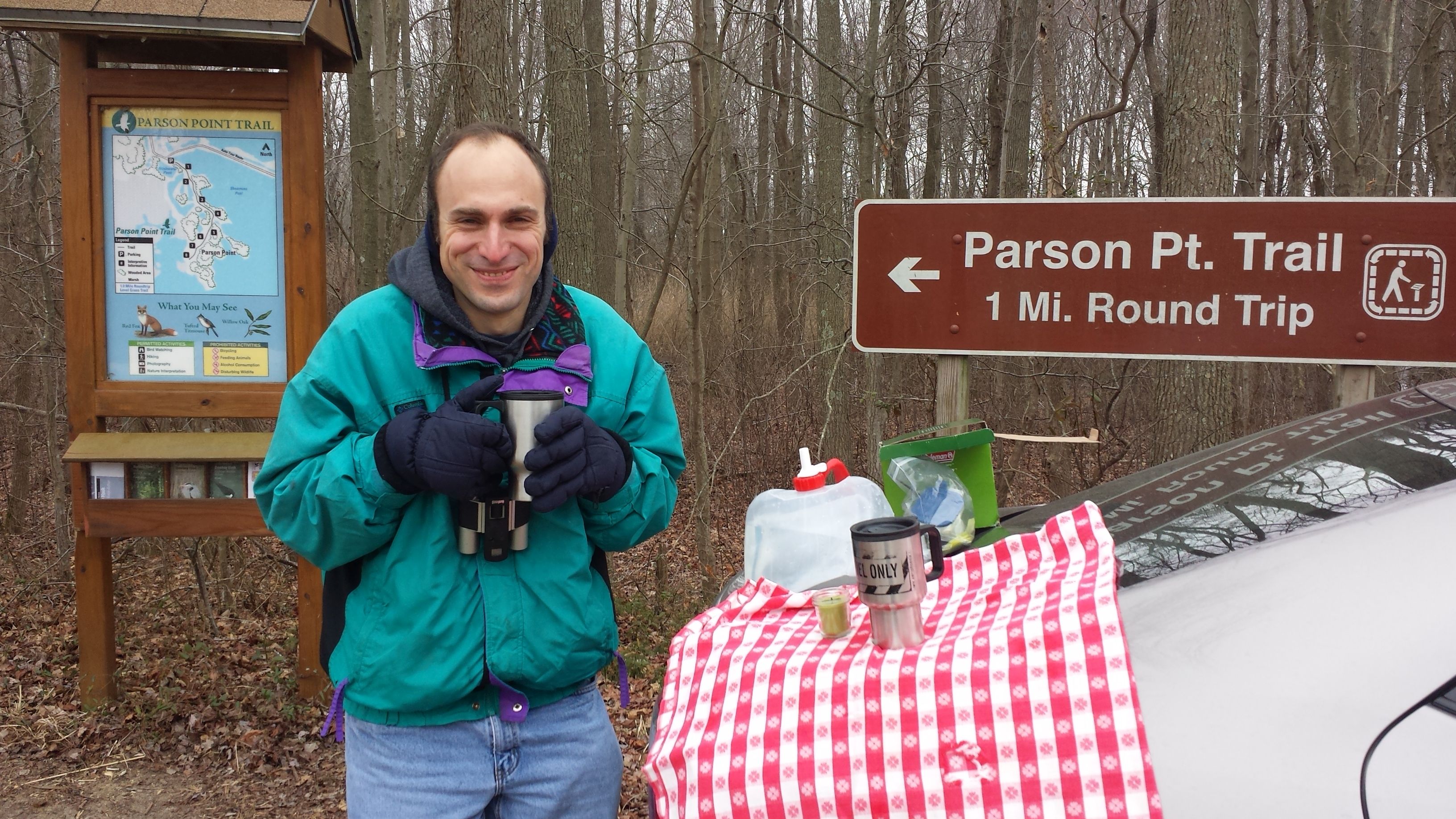Tailgating a Valentine's Day lunch which included hot chocolate.