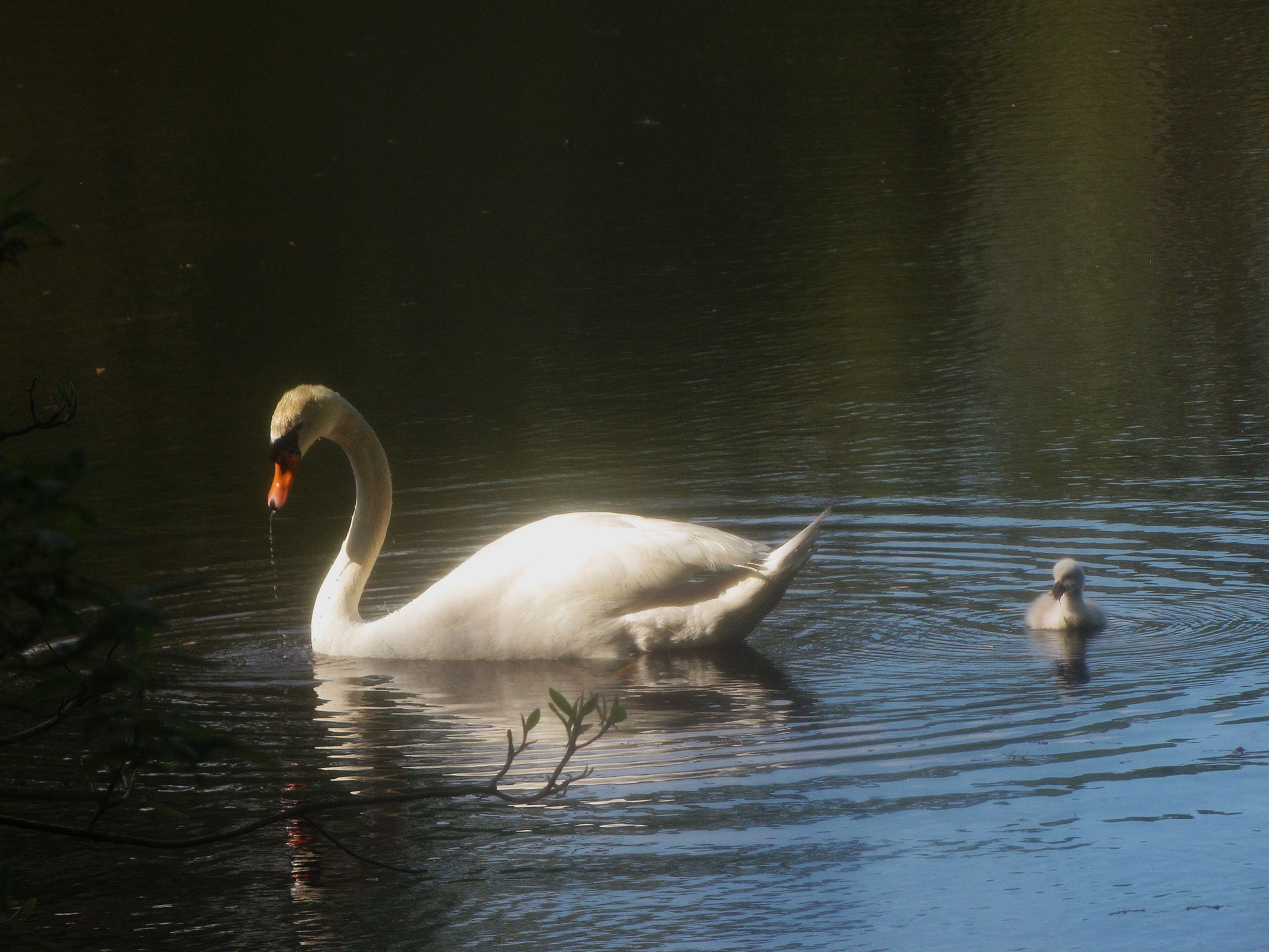Earlier Karen saw one climb up in back by the tail. It went up under the wing and then onto the back of the adult.