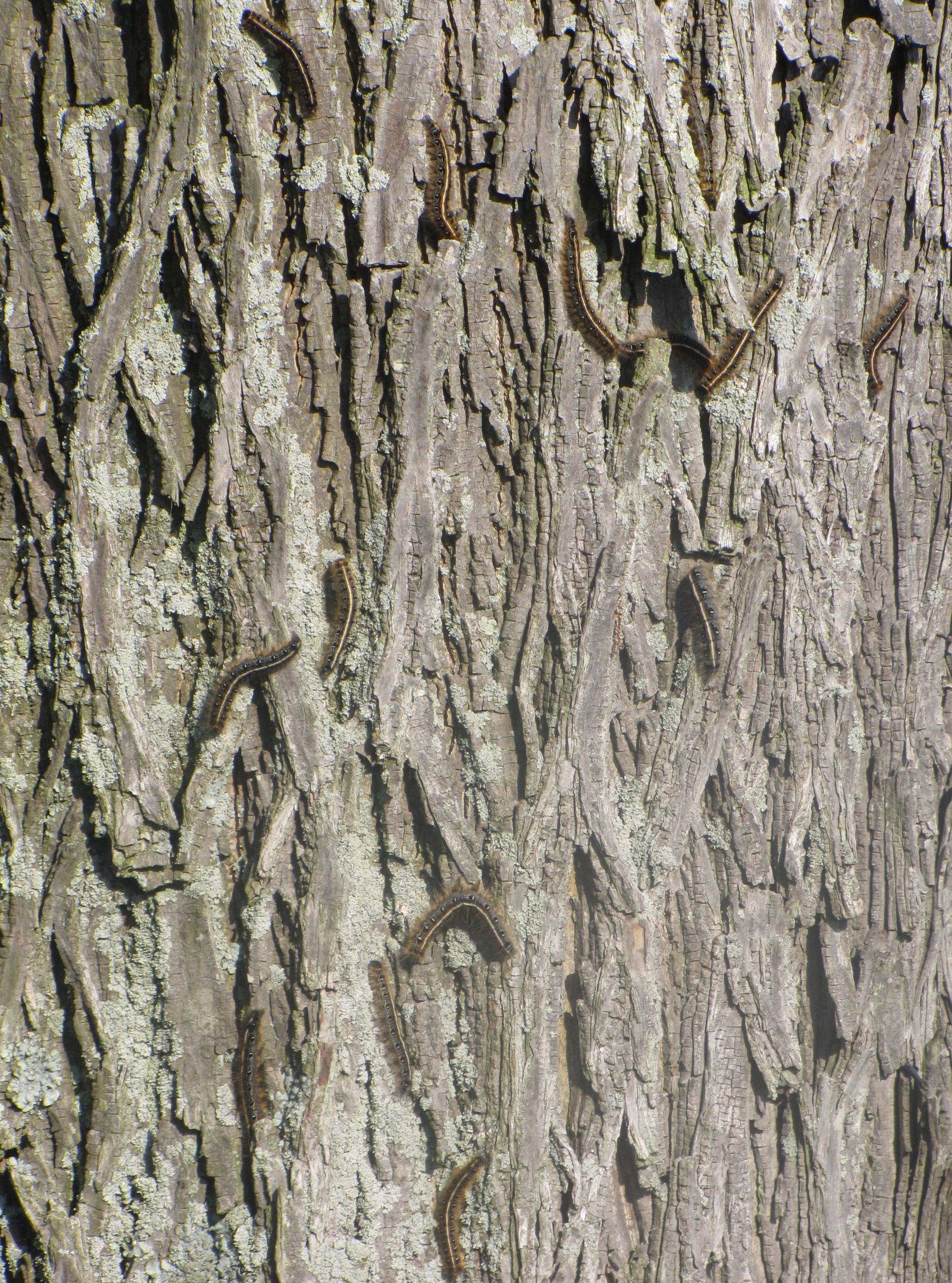 To get a better look at the bark I cropped the previous picture and got a big surprise. Eastern Tent Caterpillars were all up and down the tree.