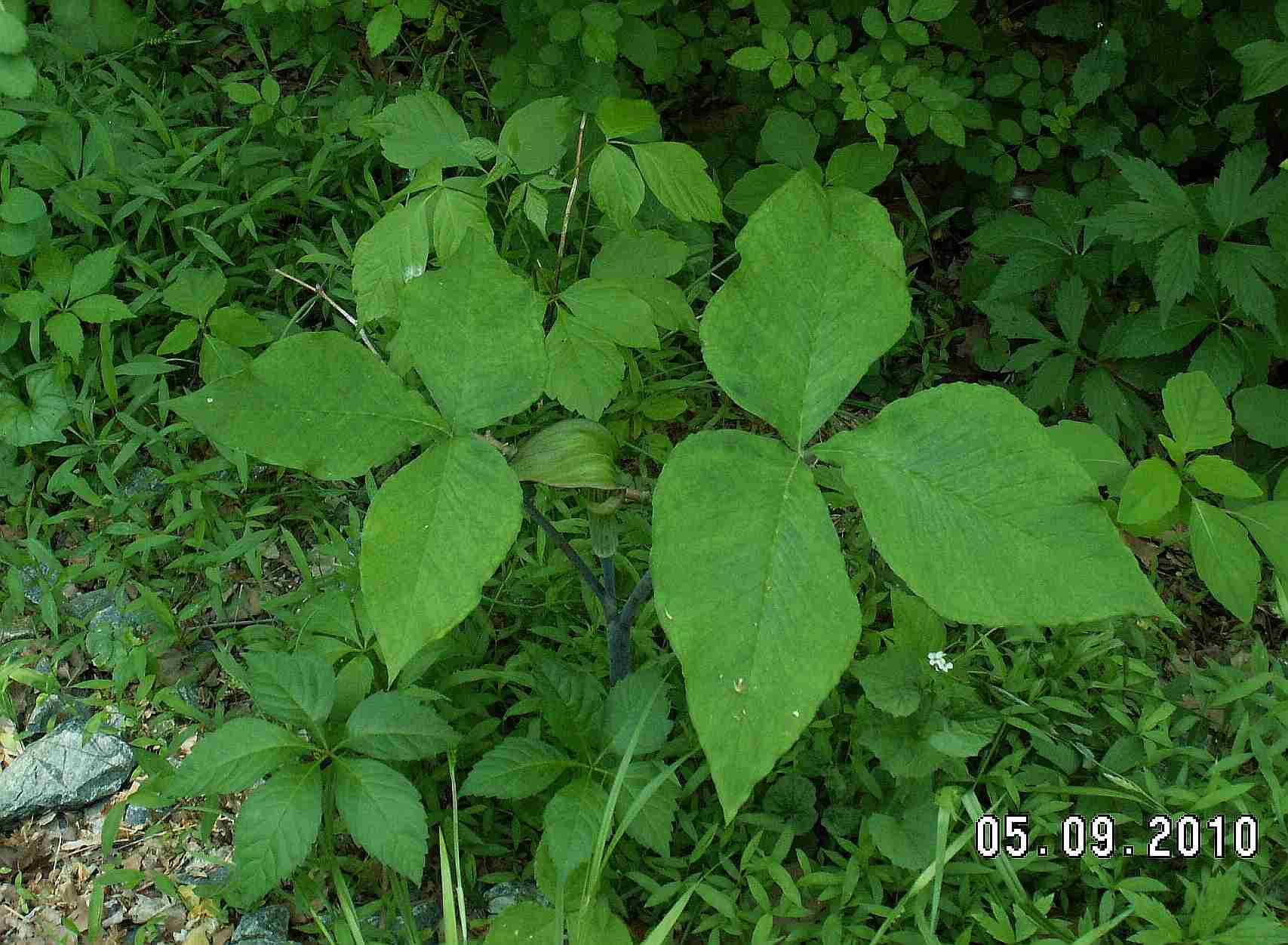 Jack in the Pulpit separating the Virginia Creeper in front from the Poison Ivy in back.