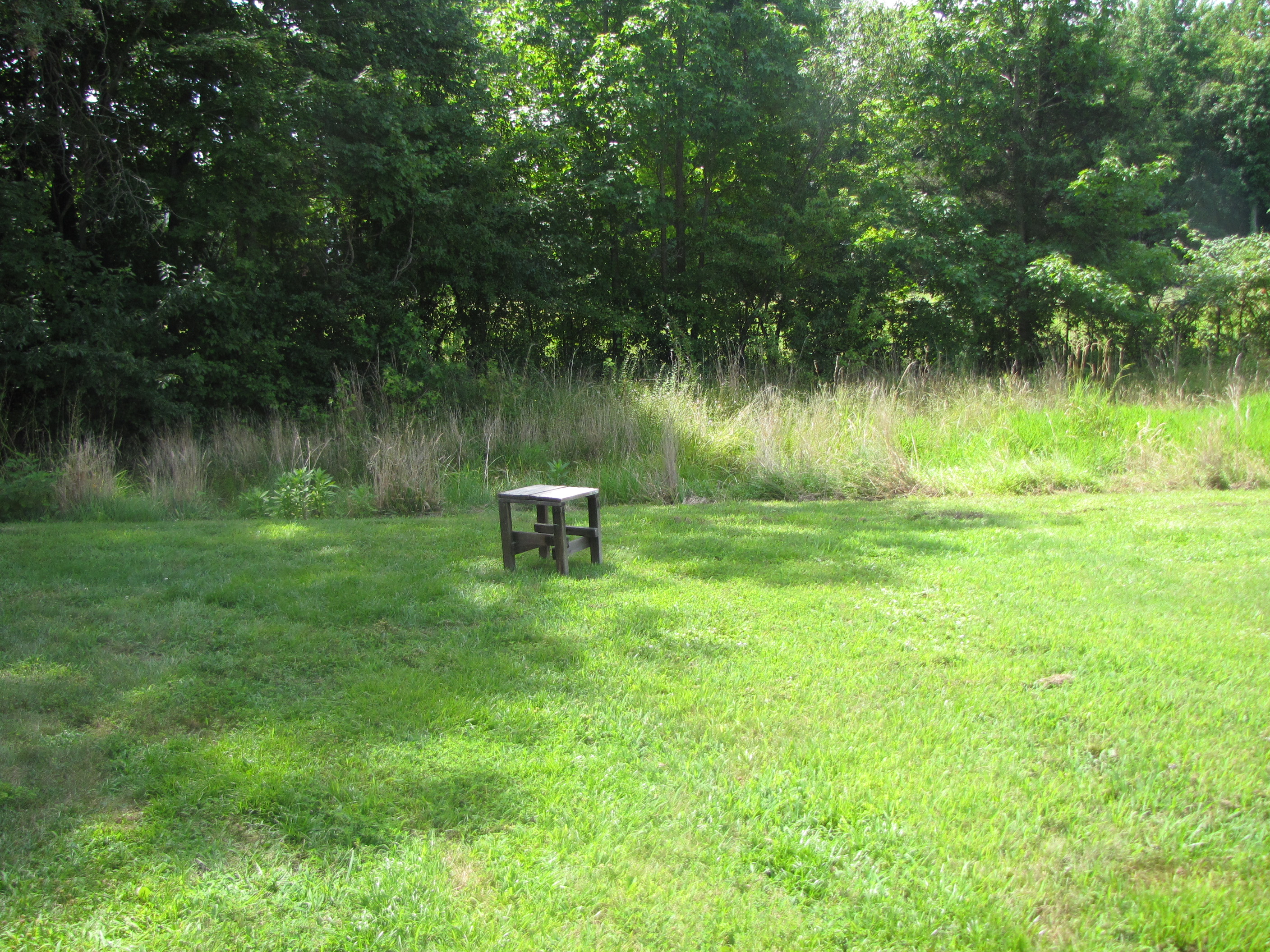 It's summer and there's lots of activity now. When I go back inside I carry the stool back to the porch. For now, go ahead and sit on the stool.
