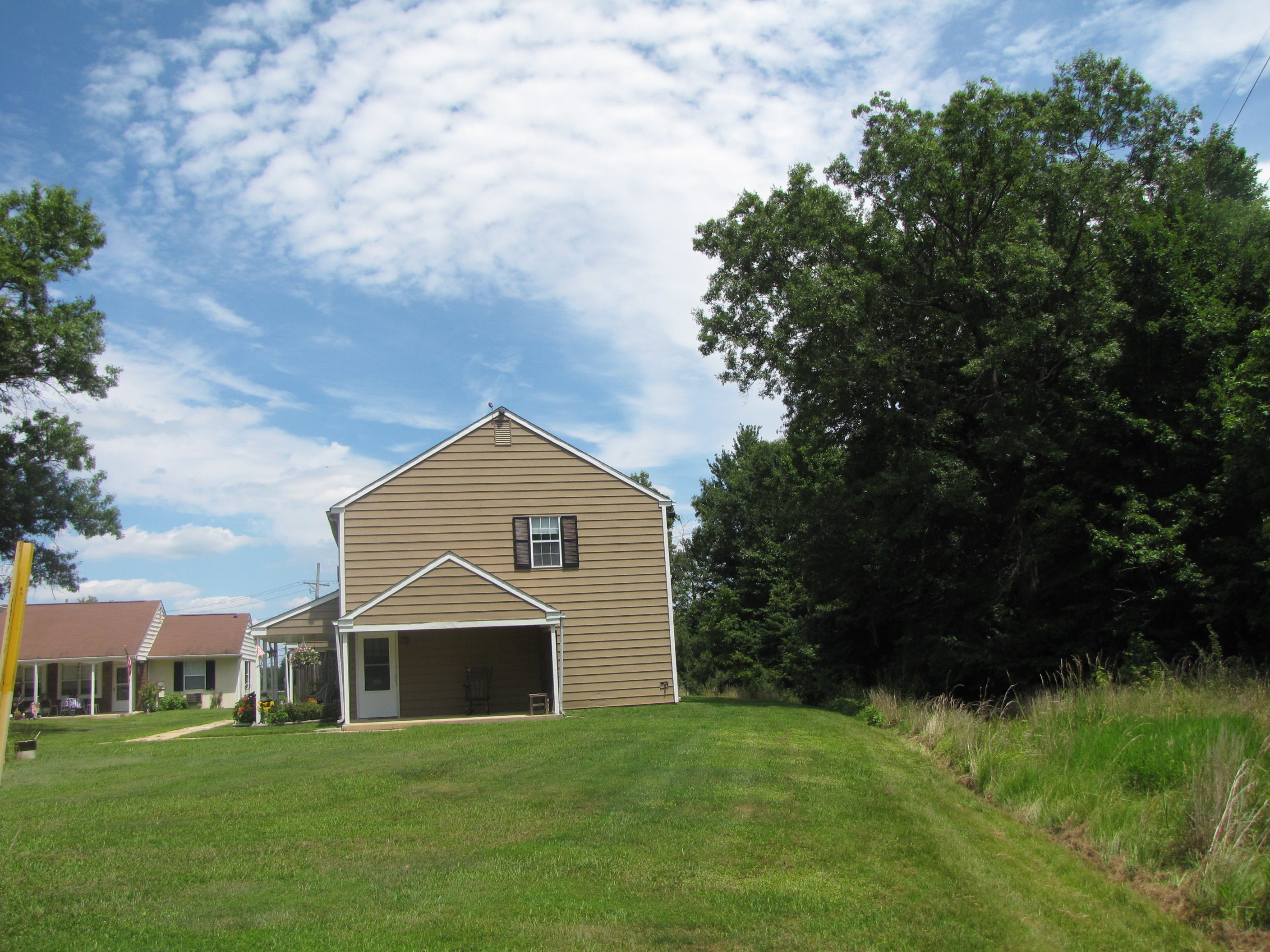 The side of my building. An awning over the porch shelters the door to my upstairs home.