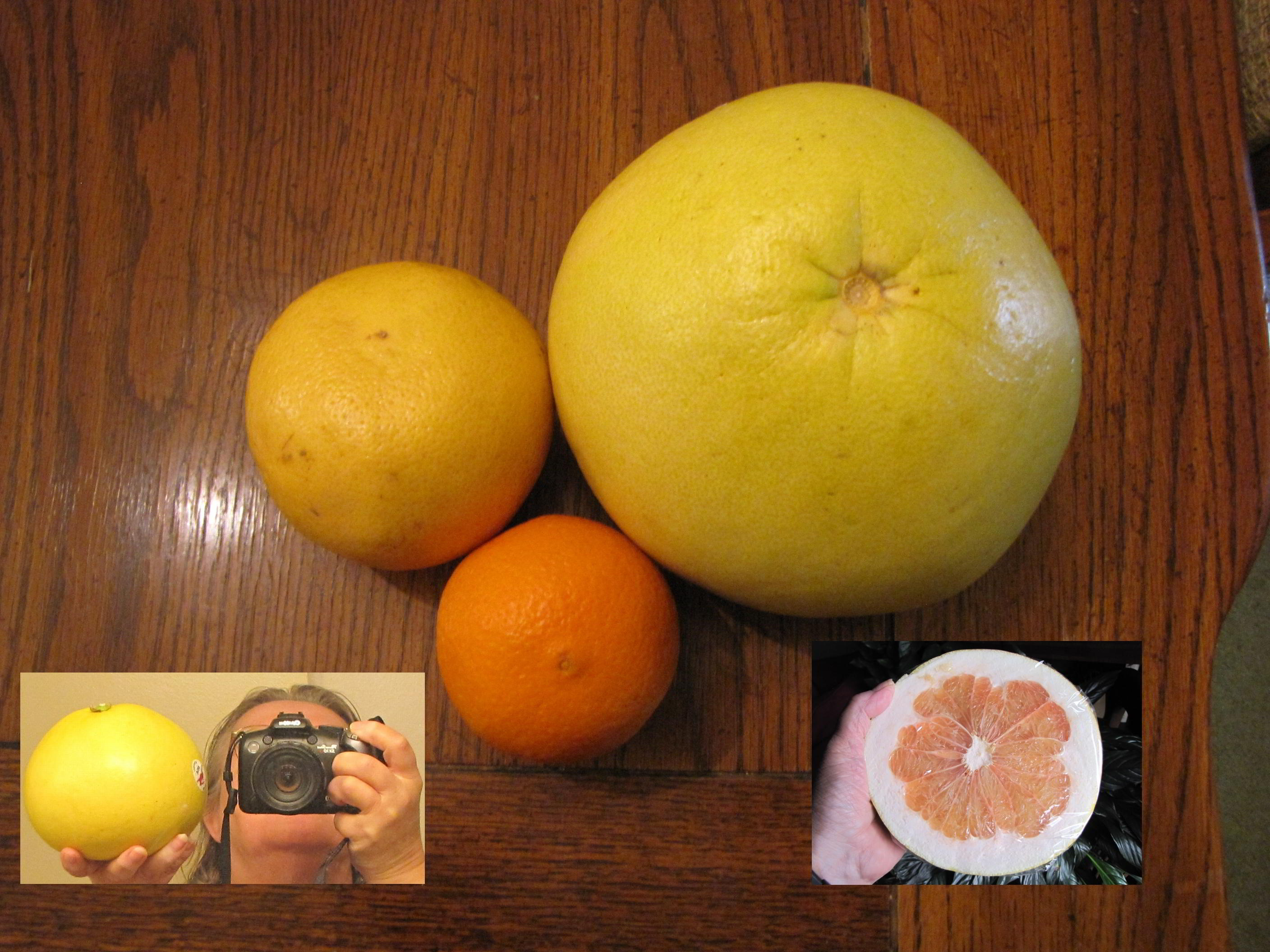 3/14/11 - Ate my first Pommelo today. In the picture, an orange, a grapefruit, and a Pommelo.