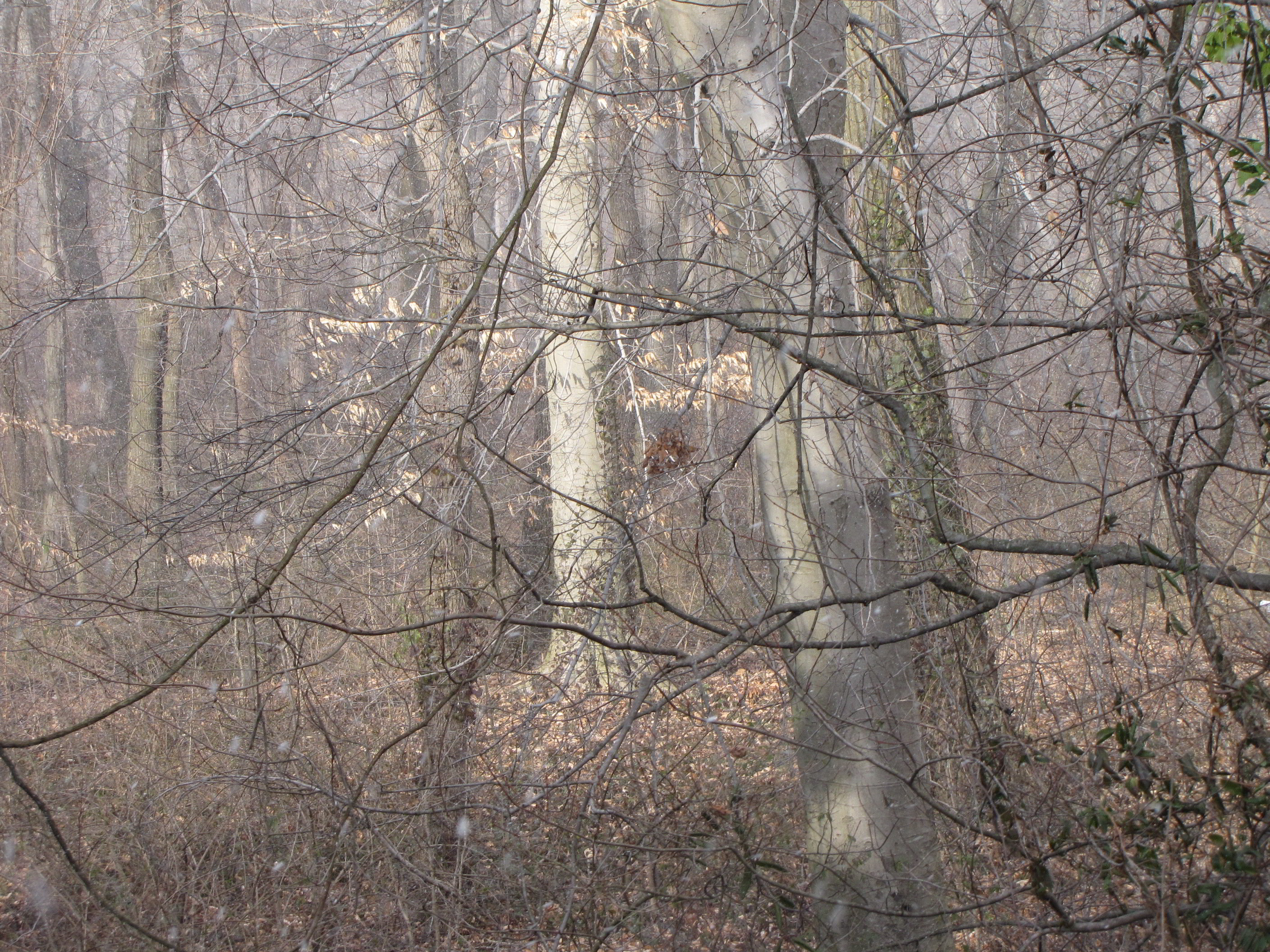 2013-2-18 This is to remember an unusual (for me, anyway) event - a sun snow shower! A few blurry snow flakes are in the foreground.