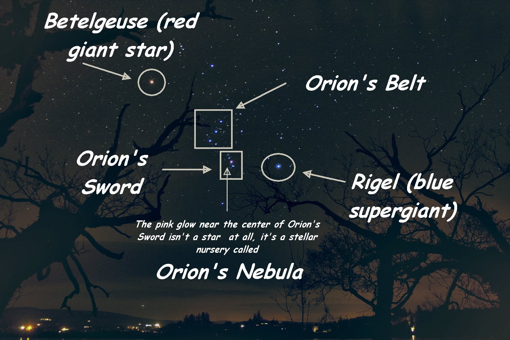 Orion as seen from Ireland, APOD - with a few of my own notations.
