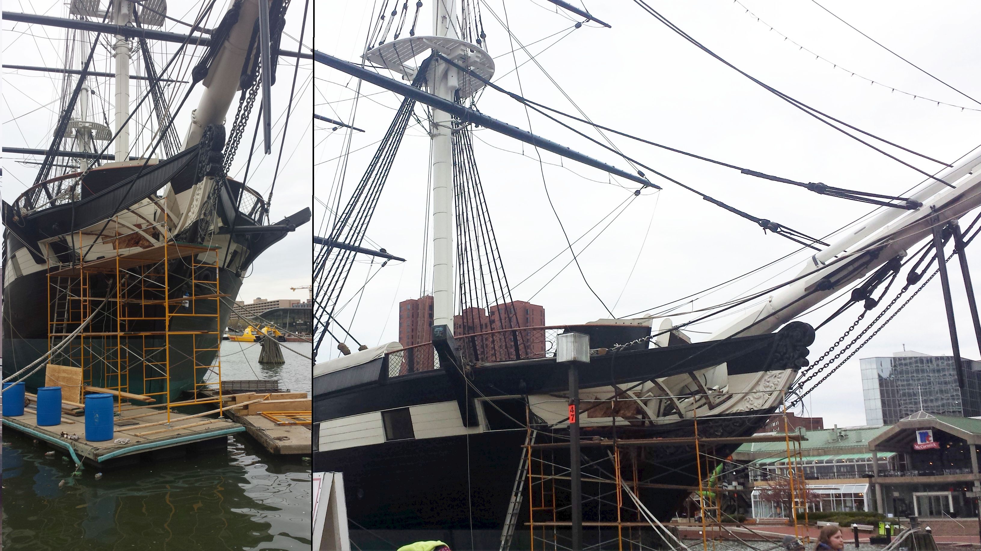 2016-04-11 - In Baltimore's Inner Harbor the U.S.S. Consitution is in dock for repairs.