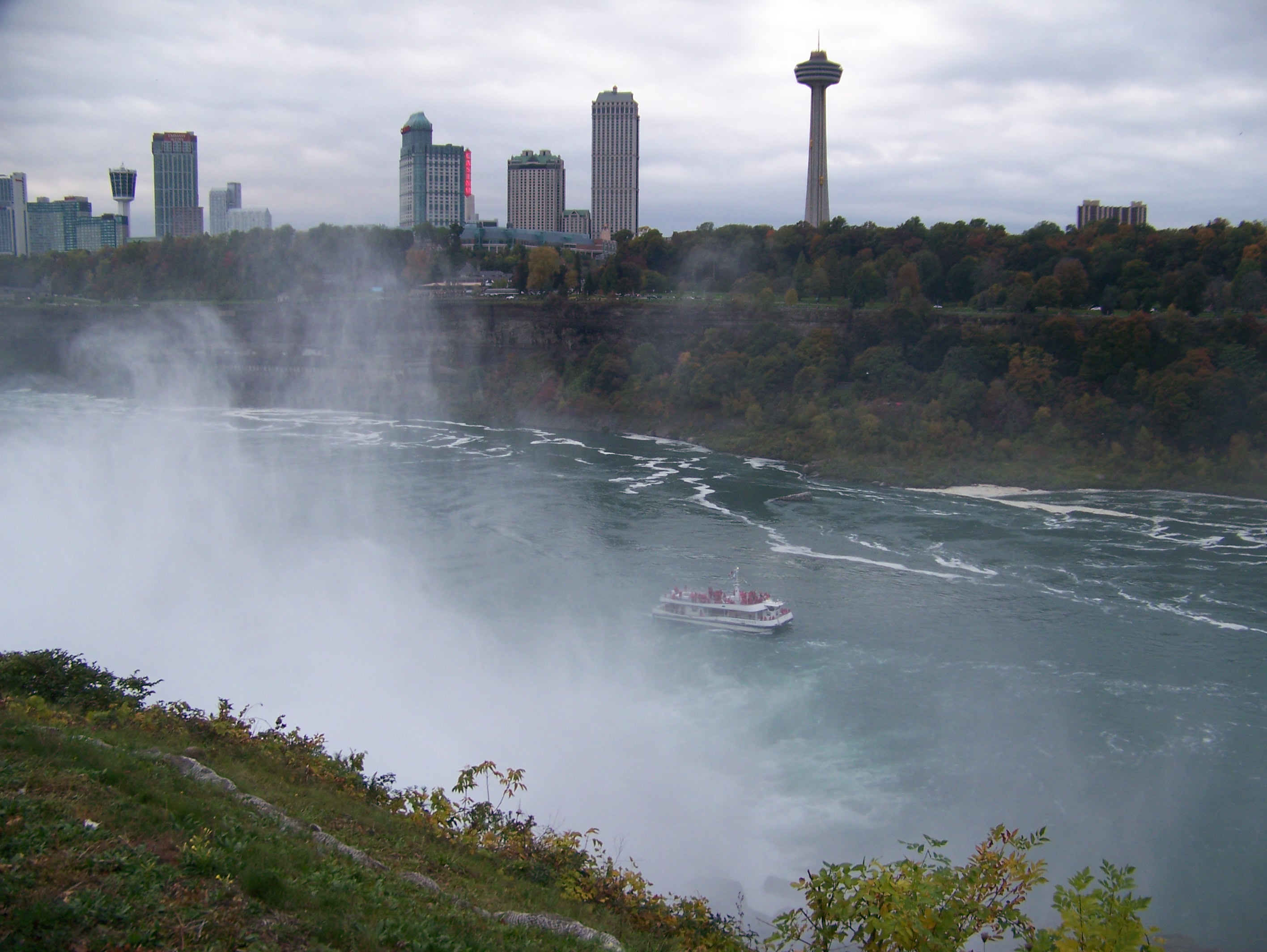 The Maid of the Mist still making the rounds. View from mainland, New York State, below the Rainbow Bridge.