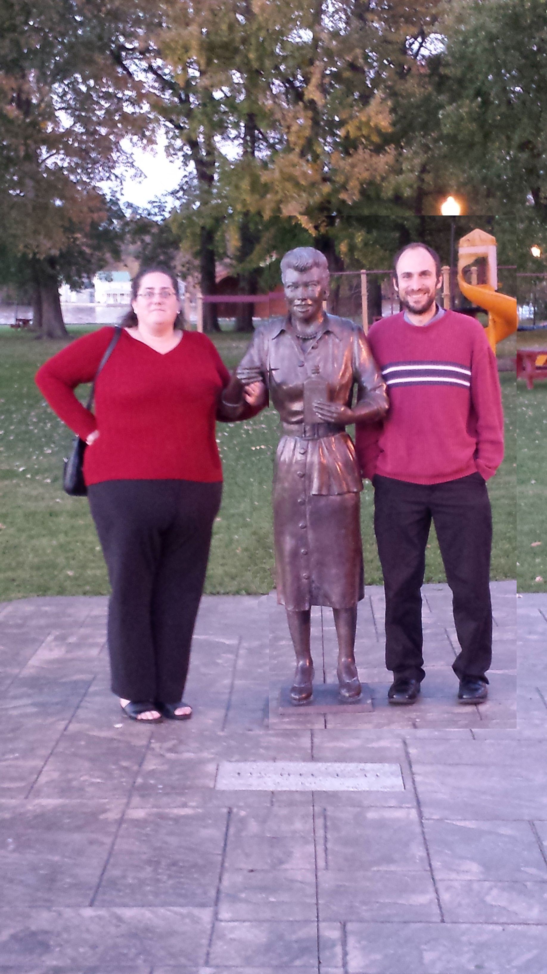 memorial park - Lucille Ball with Karen and Michael - the town thinks the statue is hideous and wants to give it a makeover - link to story in description