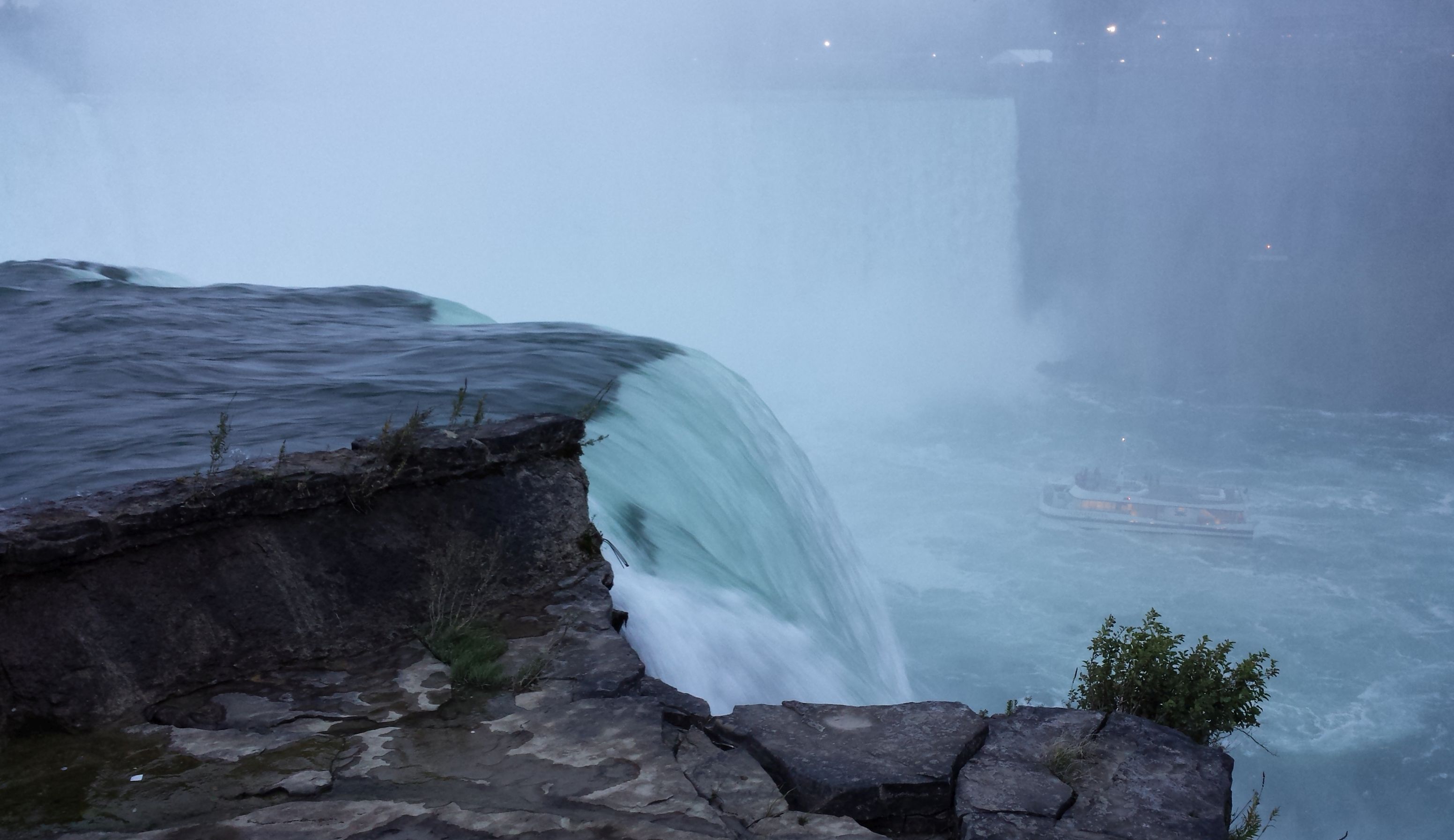 Comments on the Horseshoe Falls from the American side with the Maid of the Mist in the water below