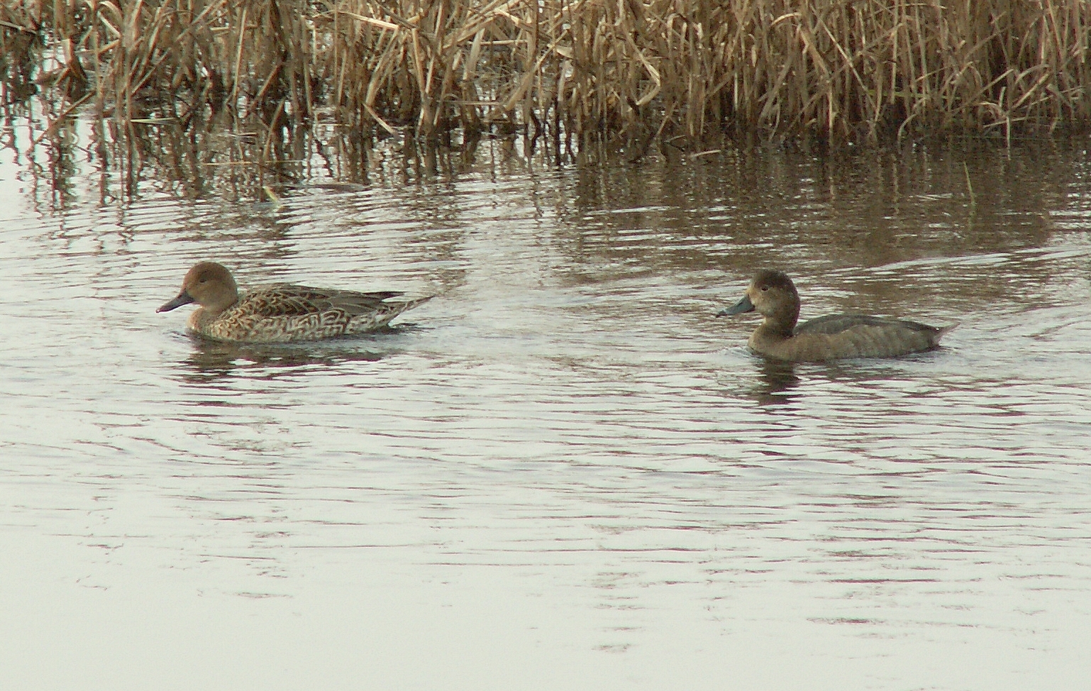 Comments on Pintail on the left, on the right is fem. Redhead - Bombay Hook NWR (Nov. 27, 2006)