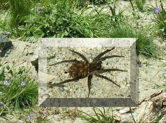Wolf Spider with spiderlings on its back 2011-4-24 California, by Karen