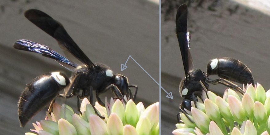 (BG) Four-toothed Mason Wasp (Monobia quadridens) 9/2/13 Newark Oaks, DE the white spot behind the eye is just glare