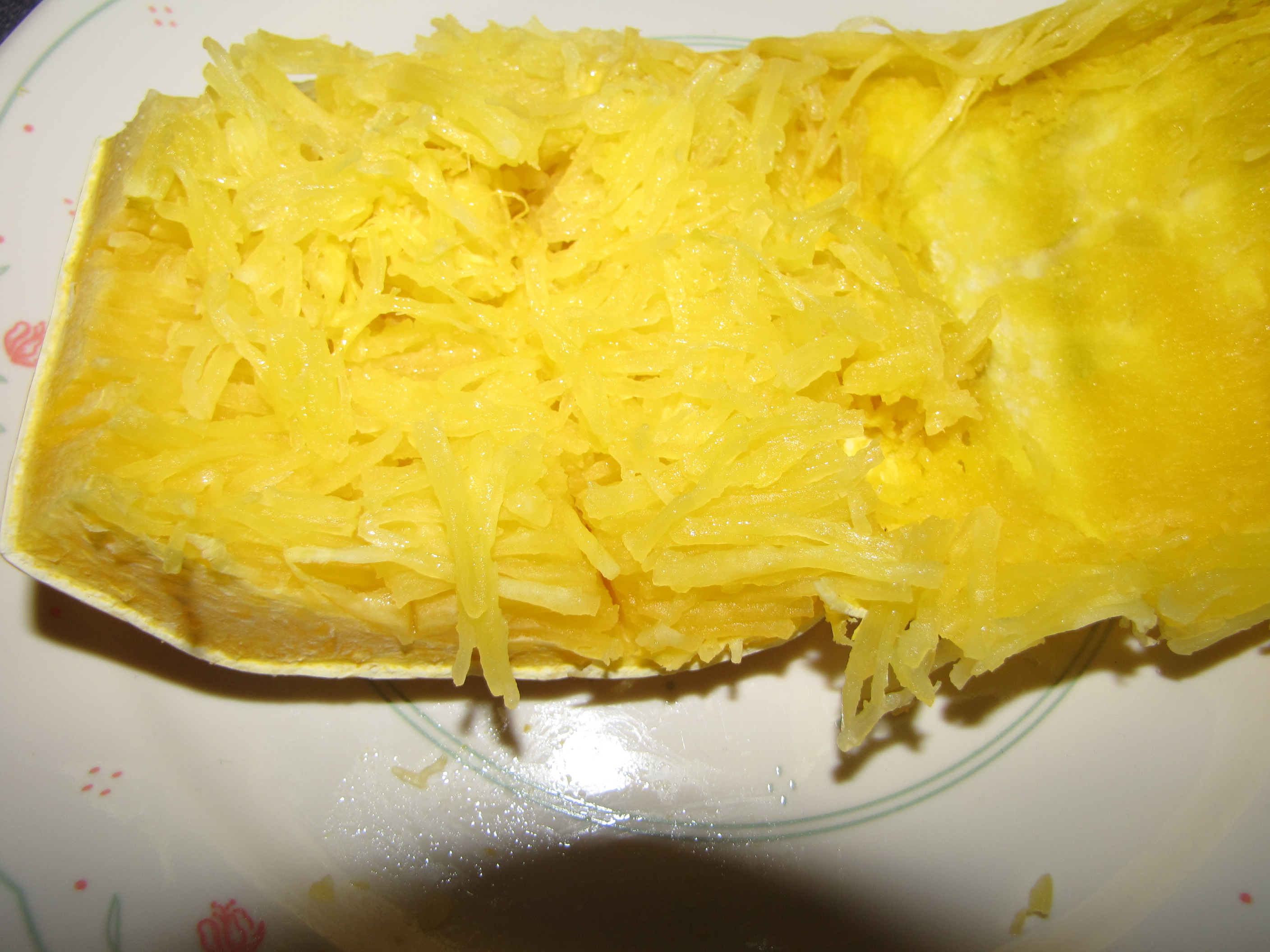 2014-11-20 - Spaghetti squash from Harford County, MD - Just like Melissa said: 10 min in microwave. I added butter and looked at the salt shaker. Delish!
